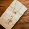 Colar Corrente Veneziana Pingente Cruz com Ametista Banho Ouro 18k Colar Corrente Veneziana Pingente Cruz com Ametista Banho Ouro 18k